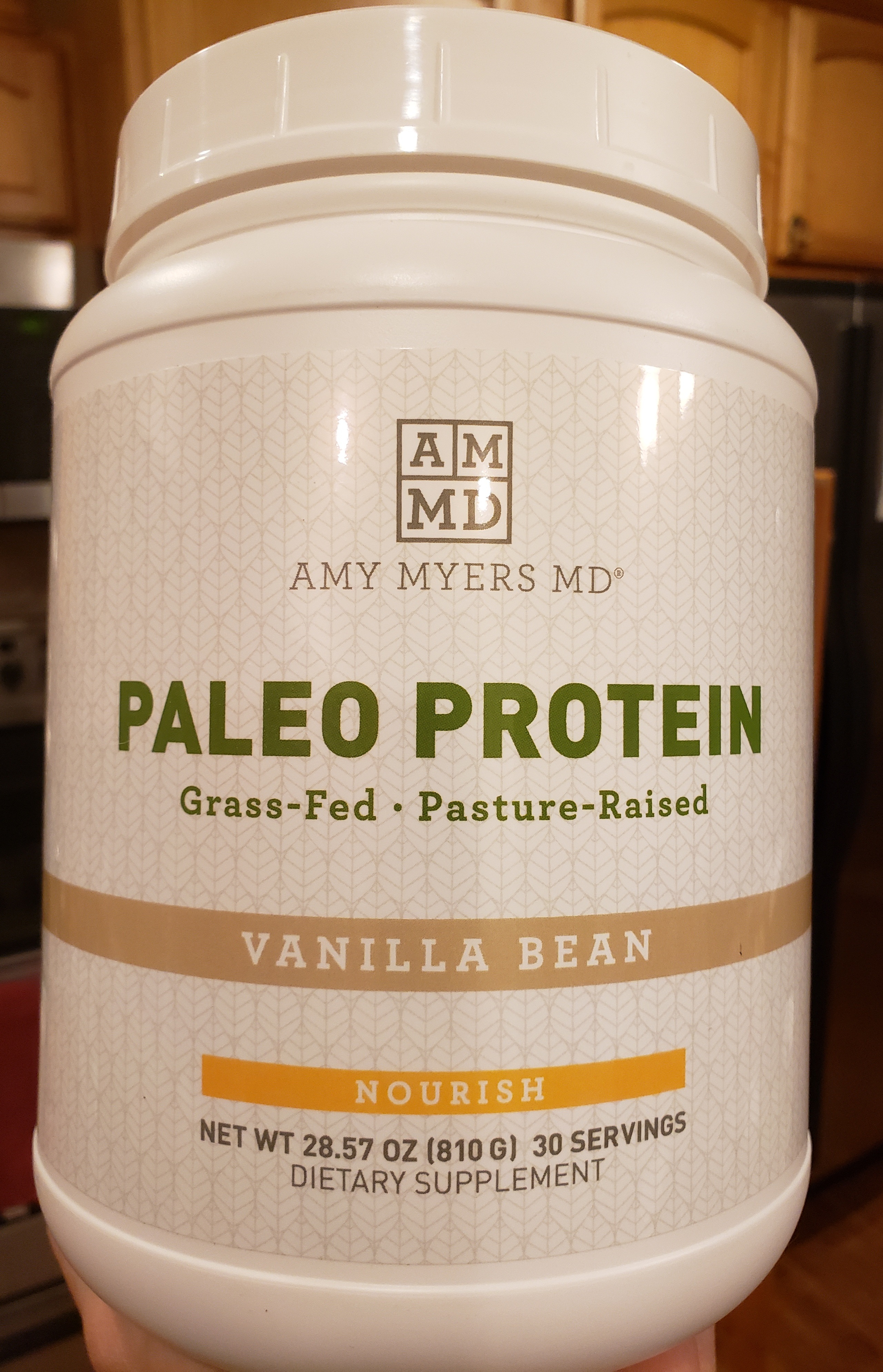 For the rest of the final week I had multiple formed BMs on several different occasions and far fewer restroom trips, less pain, cramping, bleeding, etc. I also didn’t notice this until the very end of week 4… but some other persistent symptoms (some Lyme related and some UC) that were bothering me were starting to lessen and fade away. I had been dealing with weird nerve sensations (buzzing) in my upper back, random belching during the day (always in the morning), daily tinnitus and muffled sounds in my right ear, and frequent headaches/migraines in my right eye were all starting to occur less and less with some being resolved completely. As I began to feel better and better I also picked up a new product (Paleo Protein shown on right) from the Amy Myers store (since I had been enjoying this one so much).